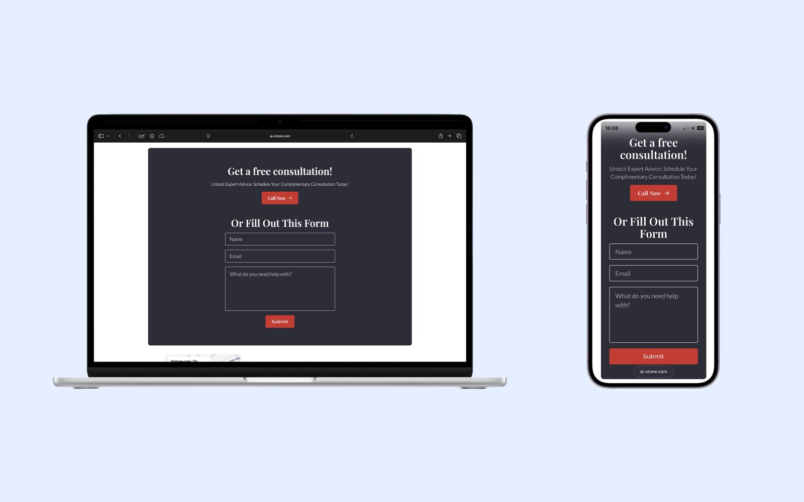 When someone lands from Google, they’re deciding fast. We positioned location, trade credibility, and a clear call-to-action immediately, so the customer knows they’re in the right place and can contact AJ in one tap.