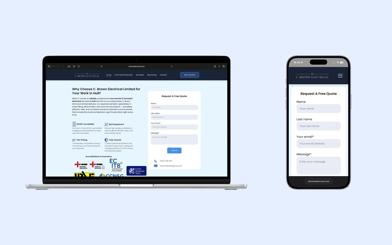 We rebuilt C. Brown Electrical’s website to feel instantly credible for commercial work in Hull - with clear proof, strong service structure, and a “get a quote” flow that makes it easy for busy business owners to enquire.