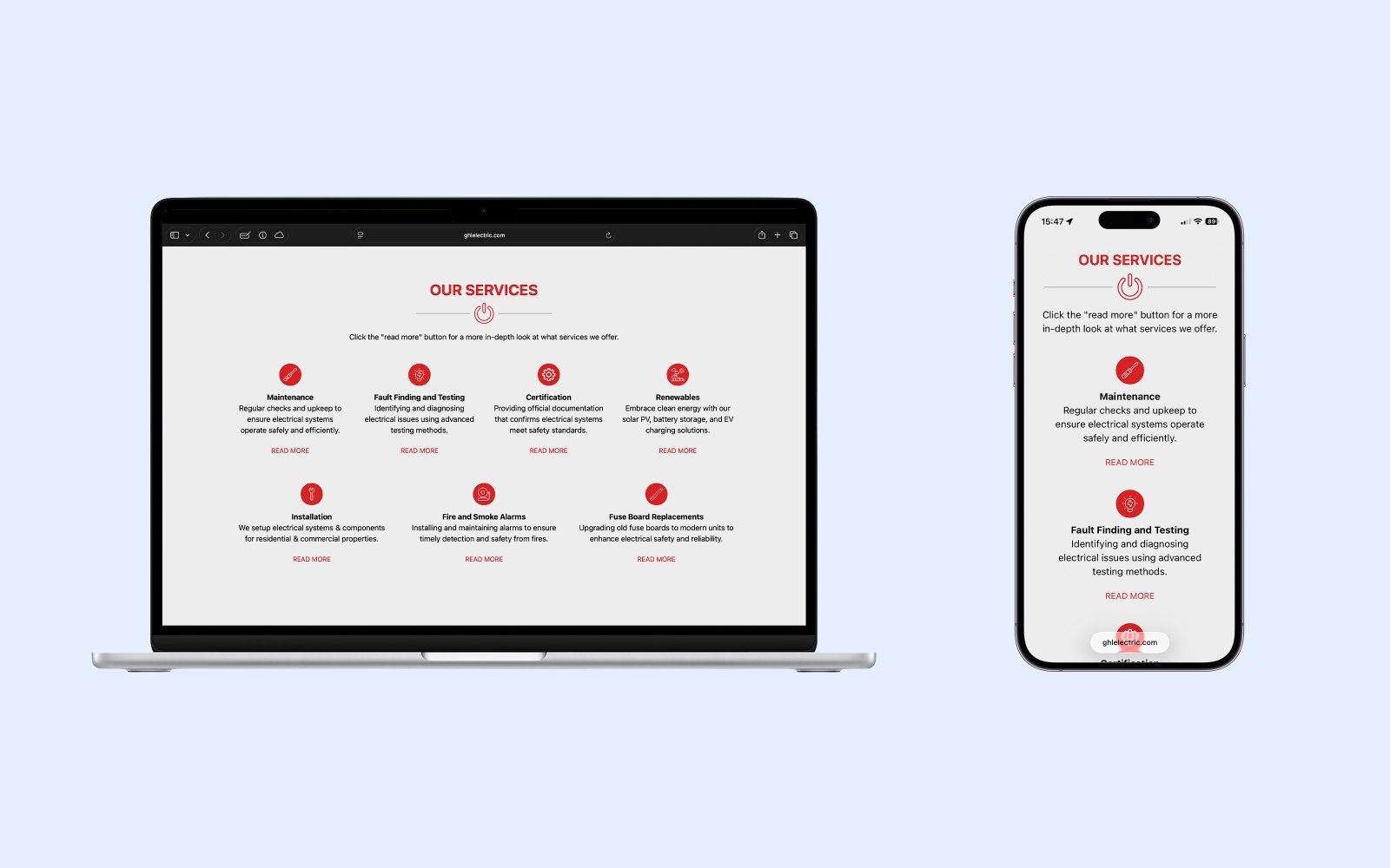 We built a clean, trust-first website for GHL Electric that makes it obvious what they do, where they cover, and how to get in touch - designed to convert mobile visitors into real jobs, not just clicks.