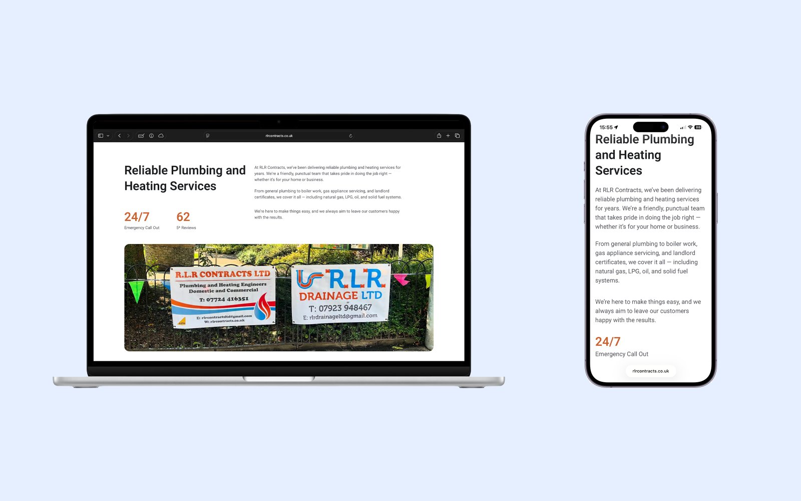 We built RLR Contracts a clean, trust-led site focused on fast action (Contact + Emergency Call Out), clear service clarity (boilers, bathrooms, drainage, reactive maintenance), and proof up-front - helping them look like the obvious safe choice for local homeowners and businesses.