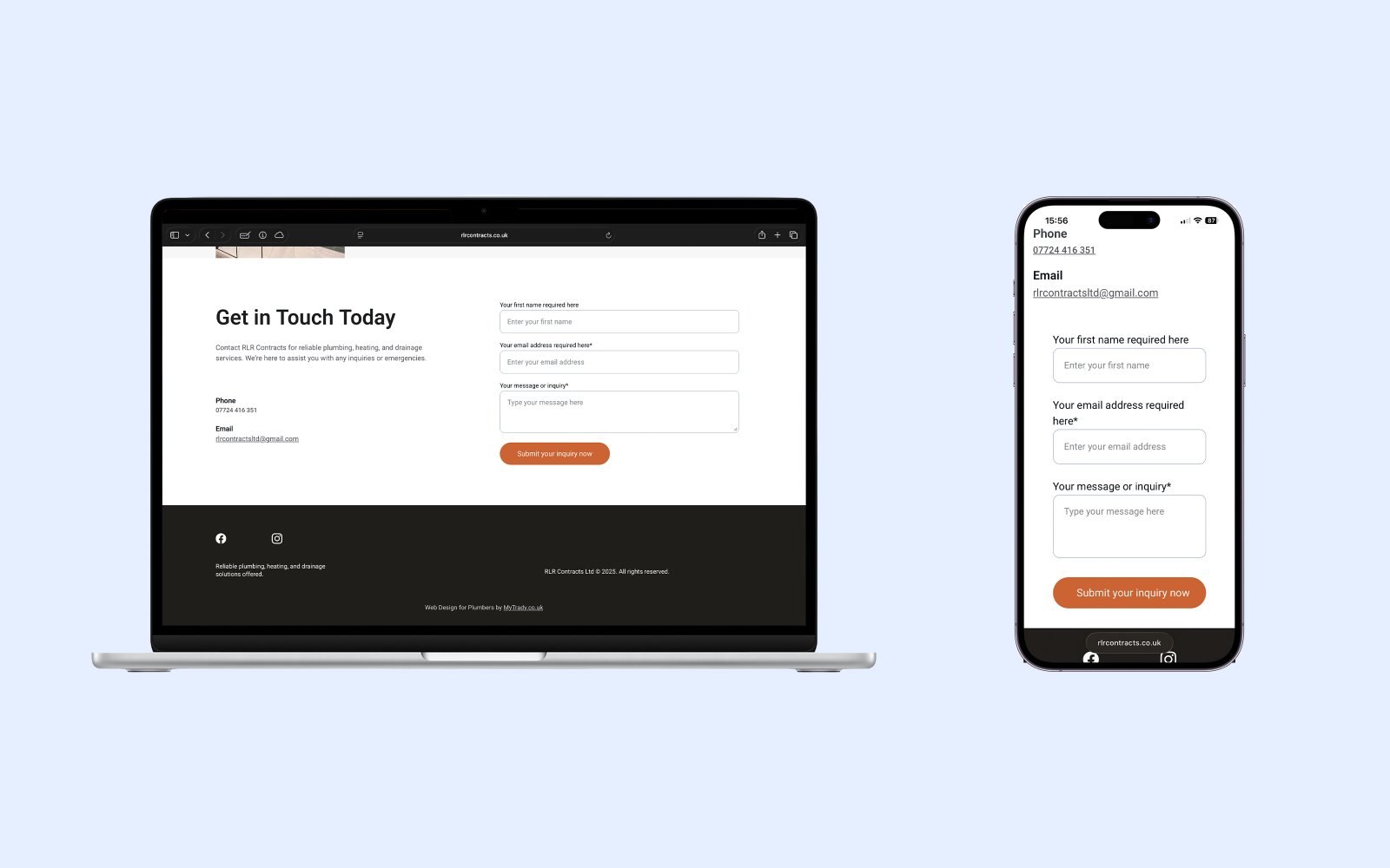 RLR Contracts needed a website that immediately communicated what they do (plumbing, heating, drainage), where they cover (Blairgowrie), and how to get in touch fast - especially for urgent jobs. The goal was simple: look trustworthy in seconds and make enquiries effortless on mobile.