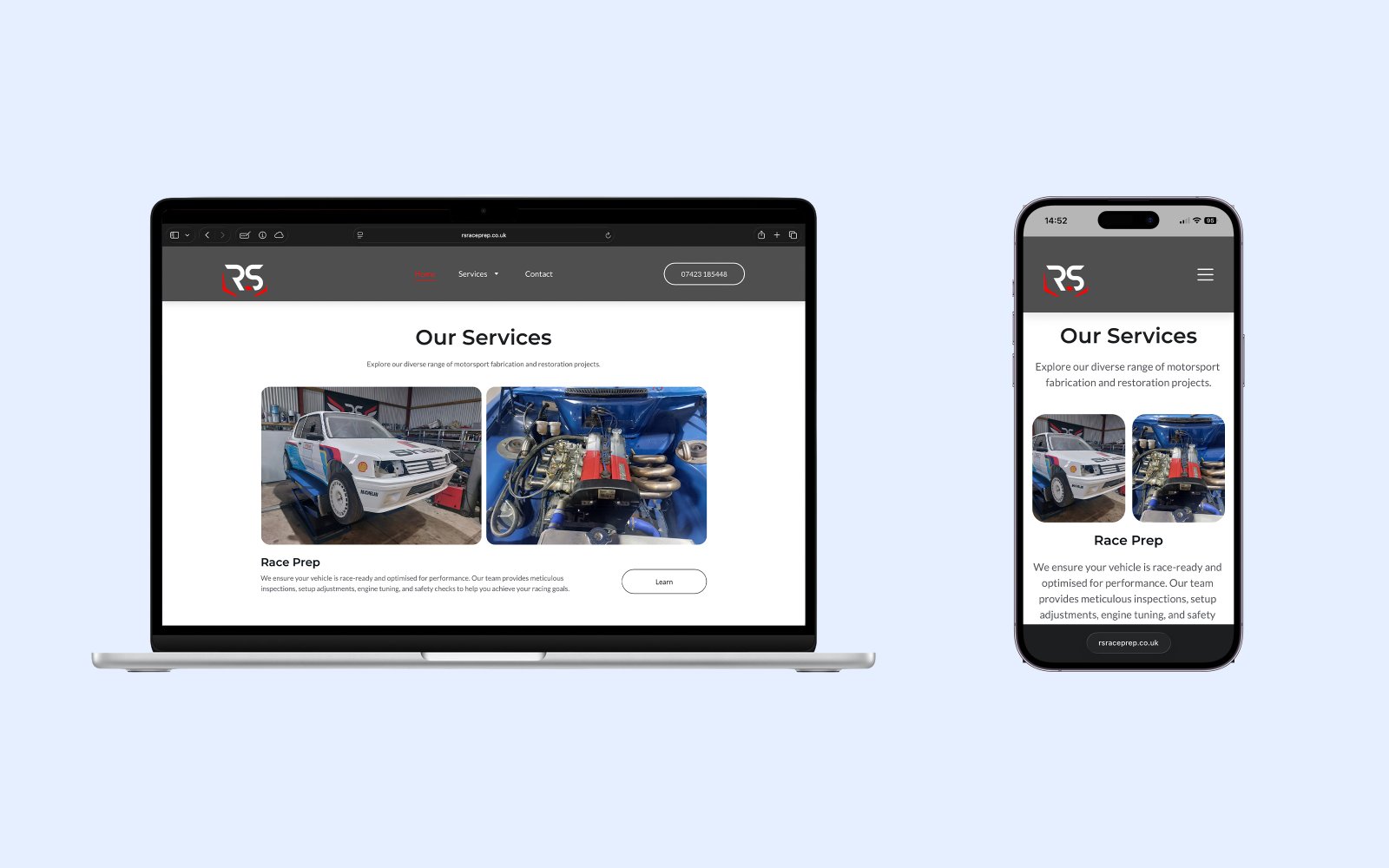 RS Race Prep & Fabrication now has a site that looks serious, explains the services clearly, and backs it all up with proof - gallery work and testimonials - with a contact route that’s obvious on desktop and mobile. The result is a cleaner journey and better-quality enquiries for higher-skill work.